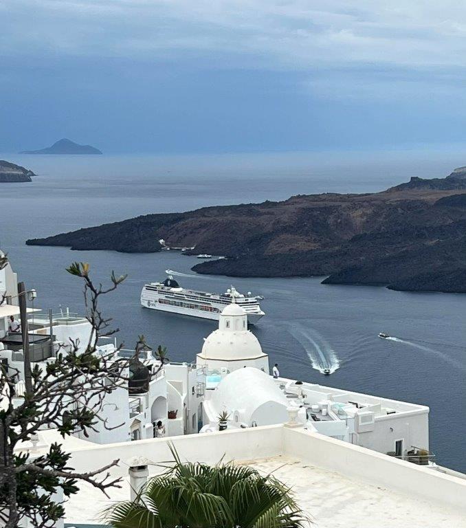 Willy and Deanna went on a wonderful September cruise to the Greek Islands and Türkiye. Dave and Brenda Gleason joined them. They all flew in and out of Athens, where they started and ended their voyage. Before departing, Willy and Deanna stayed a couple days in Athens. Their hotels were within walking distance from the Acropolis. They visited the Greek islands of Santorini, Mykonos and Crete, and in Türkiye, they stopped at Istanbul and Bodrum. They explored the Bodrum Castle, and visited the Egyptian Spice market in Istanbul. It was interesting to see brilliantly engineered architecture, some of which remains standing after thousands of years. Prices were low and the food was excellent. The local people were friendly and took great pride in the quality of any work they did. The Costa cruise ship passengers were mostly European, and Willy used a translation app to effectively communicate in 14 languages! Willy had the most fun he has had in years when they visited Santorini. There were three choices to get to the town up a vertical 500 feet from the dock. Cable car, walking or donkey were the choices. Well, the no-brainer choice was to take a donkey! The 10 donkey ride was exciting and hilarious. The donkeys climbed a steep slippery cobblestone series of switchbacks. Donkeys would jockey their way up through people and other donkeys going up and down. Deanna and Willy laughed the whole way up. Parts of the ride seemed precarious when the donkey was next to the wall. The rider's feet were above the wall, and the wall was at the edge of a cliff!