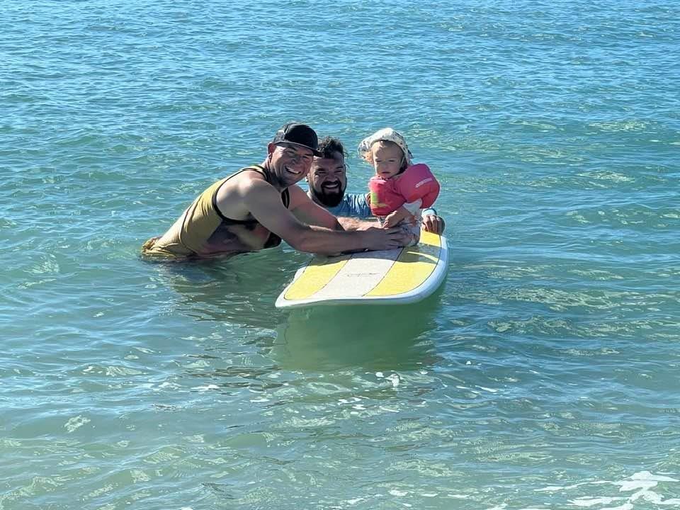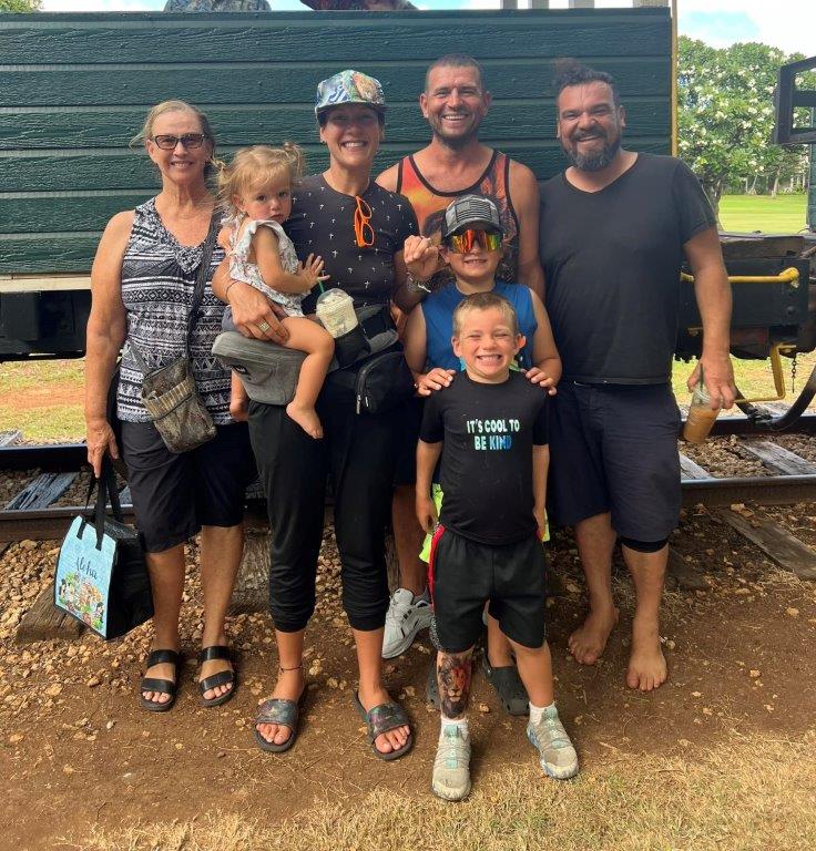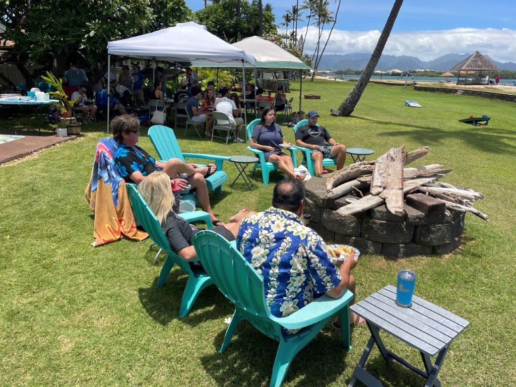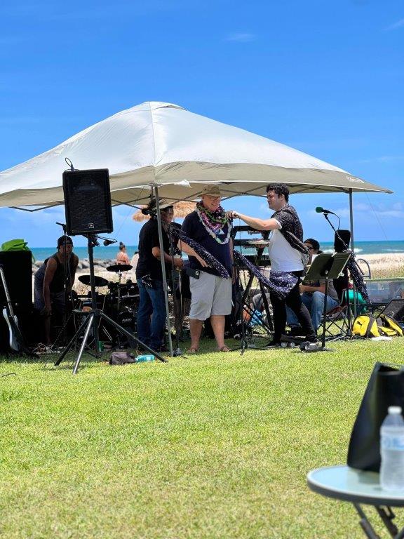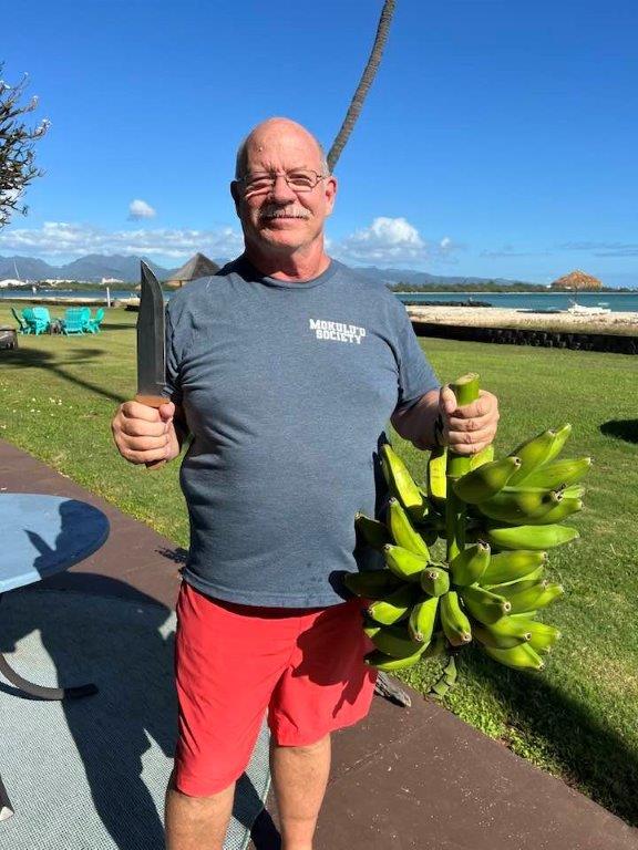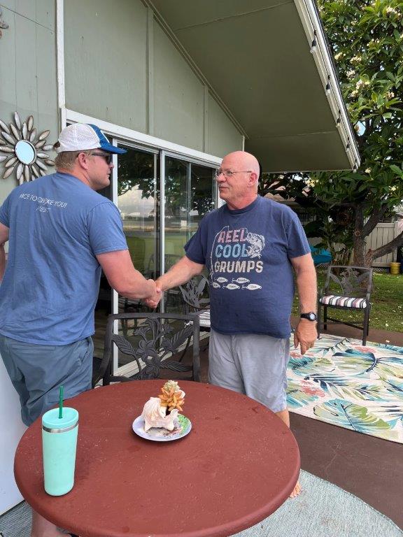 Willy retired in May! Hopefully this one lasts. There was a celebratory event at Willy and Deannas home with food, a band (Chain Reaction) and 125 guests! The event lasted about 12 hours, from the time the sunrise surfers arrived until evening when the last visitors left. About half the guests were Willys co-workers, and half were from the community. Dave and Brenda Gleason came to witness it, and the big surprise was Kirks attendance. Deanna woke Willy up from napping, and said there was someone here that wanted to train Jiu-Jitsu. Kirk was wearing a hat and sunglasses, so when Willy came around the corner to greet him, he did not recognize him and introduced himself. Kirk explained that it was not necessary to introduce himself to his son!